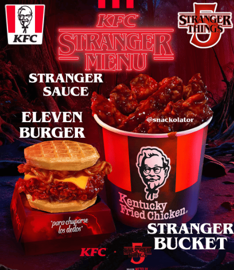 KFC Mexico is launching a new Stranger Things collab meal, with an Eleven burger, a bucket of chicken and a side of Stranger Sauce for just $10. Normally, filling your tummy with a stranger’s sauce in Mexico costs at least twice that. Absolute steal.